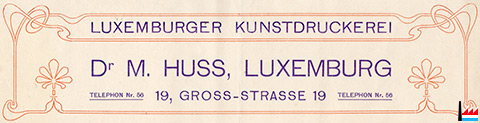 | 1948/49 | Huss Ed & Cie Imprimerie Artistique Luxembourgeoise 68a boulevard de la Pétrusse (anct. bld de Stalingrad) |