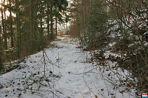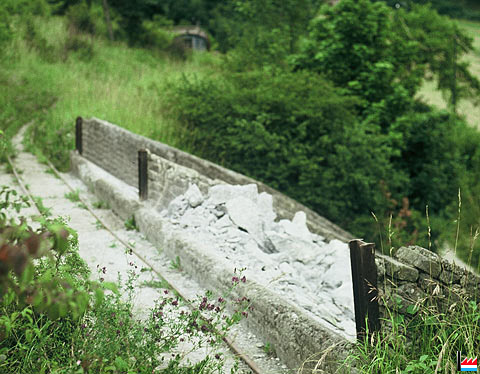 Im Hintergrund das Bett der Förderstrecke zum Eingang No 2 der Gipsgrube Faulsangerberg