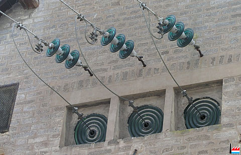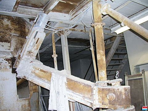 von hier aus brachte der Schrägaufzug den Gips in die Öfen, rechts