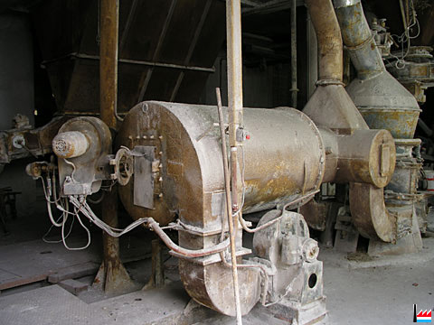 Zerkleinerung der Gipsbrocken im Gipswerk Walferdingen,