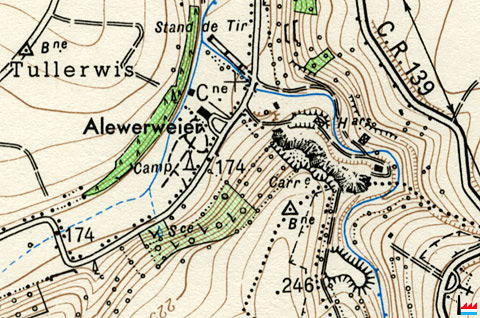 Alewerweier - Osweilerbach - Extrait de la carte « © Origine Administration du Cadastre et de la Topographie Luxembourg (ACT) - Extrait de la carte topographique à l'échelle 1: 20.000 édition 1963 - Autorisation de publication du 20.10.2010.»