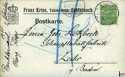 | 1893 | Manufacture de tabacs KRIES François, Echternach J90 / 1453 |