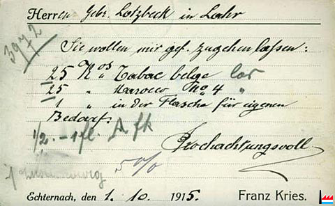 | 1919 | ![]() Amerikanische Soldaten vor der Tabak-Fabrik Franz Kries in Echternach - 1919 (Photo collection: Serge Kugener) |
