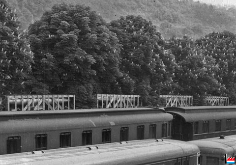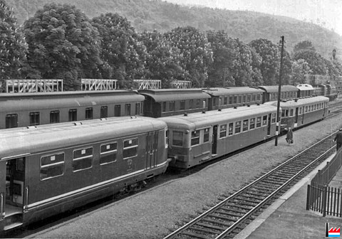 Mit Flugzeugtanks beladene Ry - Eisenbahnwagen, von Echternach kommend,