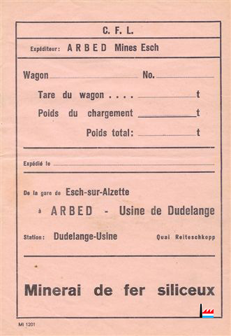 Expéditeur ARBED Mines Esch