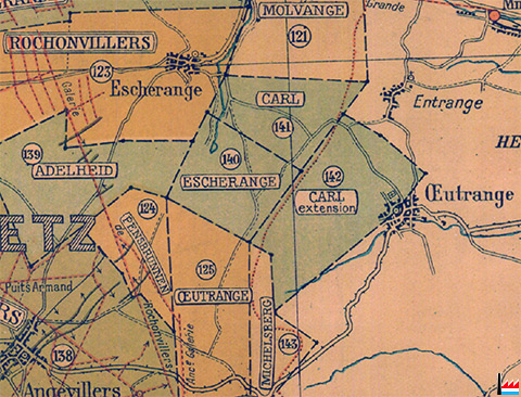 entre les concessions / mines Molvange, Michelsberg, Oeutrange, Escherange, Rochonvillers