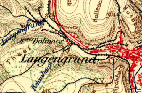 Mons Dalwoos, Langengrund - 1927 © Origine Administration du Cadastre et de la Topographie Luxembourg (ACT) - Extrait de la carte topographique à l'échelle 1: 50.000 édition 1927 - Autorisation de publication du 20.10.2010.»