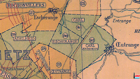 entre les concessions / mines Rochonvillers, Carl, Carl extension, Oeutrange, Pensbrunnen, Adelheid