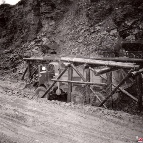 Camion à 3 essieux sous estacade avec wagonnets à la Mine Heidenfeldchen, Rumelange (Collection: Luciano Pagliarini)