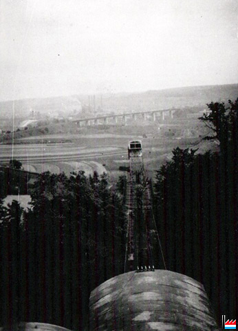 | Le funiculaire passait au-dessus de la voie Audun - Rédange pour aboutir à la tour sur la voie privée des hauts-fourneaux d'Audun (avec prolongement à Esch); longueur du funiculaire: 350 m. | |