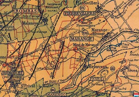 Rombas (166) - Marange (170) - Pierrevillers (171) - Marengo (181) (Carte Collection: industrie.lu)