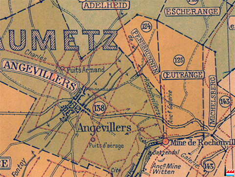 entre les concessions / mines, Escherange, Michelsberg, Rochonvillers, Angevillers, Pensbrunnen