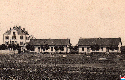 Directionsgebäude und ein Teil der Beamtenwohnungen des Eisenerzbergwerks Aumetz - um 1907