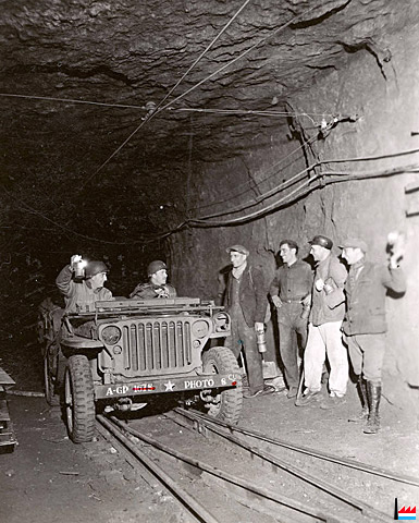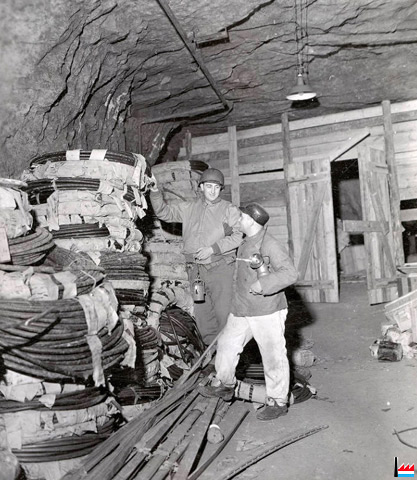 L'armée américaine dans la Mine Burbach oû les Allemands construisaient / voulaient construire des missiles V1 pendant la 2e guerre mondiale - US Army in the Mine Burbach (Burca Iron Mine) at the end of WWII (Brigham Young University Harold B. Lee Library L. Tom Perry Special Collections; MSS P 661 - photographs by J. Malan Heslop)
