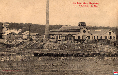 Crusnes - La mine, vers 1912 (Carte postale: Phototypie Fiacre, à Nancy; Collection: industrie.lu)