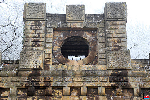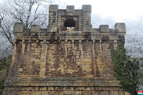 Grube Fentsch - Mine de Fontoy: Entrée de mine monumentale - ornée de créneaux et d'une tour-horloge (Photos: 7.12.2016 jmo)