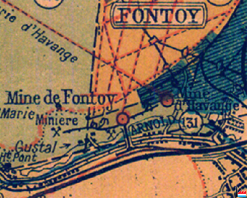 Mine de Fontoy (147) (Détail de la Carte dressée et dessinée par G. Peltier - 21 rue de l'Union - Clamart - Paris; 1920)