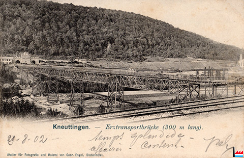 Grube Fentsch, Kneuttingen - Bochumer Verein - Erztransportbrücke (300 m lang) - um 1902 (Carte