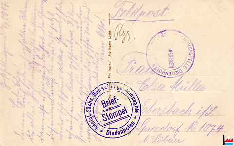 Grenadier Otto Müller III (an Elsa Müller, Ebersbach i/S (in Sachsen), Spreedorf No 1074 bei Löbau)
