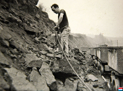 Bruno Raffaelli am Tagebau Rollesbierg zu Déifferdeng am Metzkimmert erop - 1952 (Photo collection: Remo Raffaelli)