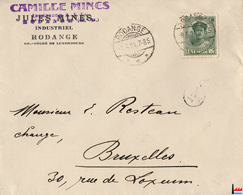 Camille Mines, ingénieur, Rodange (anciennement: Jules Mines, industriel, Rodange (Enveloppe: 8.5.1924 collection: industrie.lu)