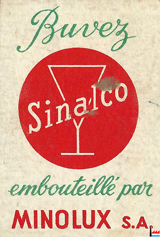 Buvez Sinalco embouteillé par MINOLUX S. A. - Étiquette d'une boîte d'allumettes - 50 x 35 mm (Collection Philippe Aschman)