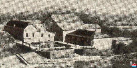 Usine électro-hydraulique (Centrale électrique) et dragage à Erpeldange (Extrait de la carte postale: Eckert & Pflug, Kunstanstalt Leipzig, Imprimerie Geisbusch, Clervaux; collection: Roger Medernach)