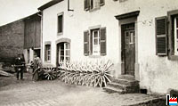 | Heimisches Holz wurde 2 Jahre im Holzlager getrocknet (an der Drëschent, mat Rellen tëschend den Dill) Dicke: 26 mm auf 22 mm gehobelt Höhe je nach Verwendungszweck: meistens 40 mm, aber auch 34 mm und 50 mm Die Sprossen wurden dann auf der Vierseitenhobelmaschine in einem Arbeitsgang gehobelt Herstellung der Zapfen auf der Zapfenmaschine (Zëppmaschine, tenoneuse, gezeppt) Prüfung der Sprossen |