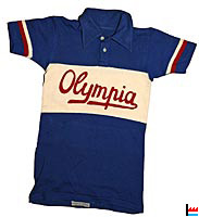 Tricot "Cycles Olympia" de Bim (Jean) Diederich (gagnant du Tour de Luxembourg de 1949, gagnant de l'étape de Toulon à Menton au Tour de France de 1950, gagnant de l'étape de Reims à Gand au Tour de France de 1951: "Duc de Grammont", gagnant de l'étape