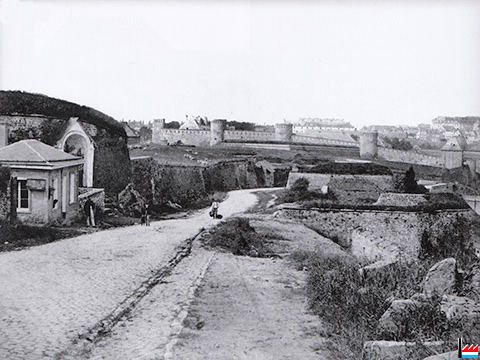 1870 - le bureau d'octroi, à côté de la Strockekapell intégrée dans les murailles du Fort Rumigny, l'ancienne porte extérieure de la route de Trèves (Photo: KUHN Dominique 1870; © Photothèque VDL; rénovée par Claude Goergen)