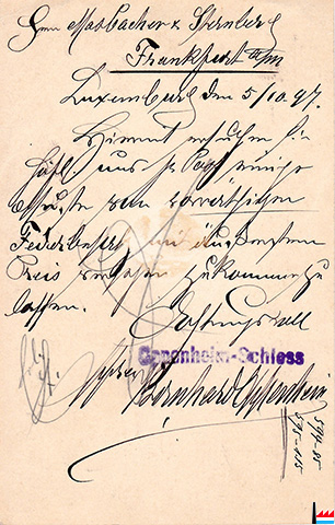 Carte postale du 5.10.1897 signée par Bernhard Oppenheim (Collection: Chantal Rassel-Hengen)