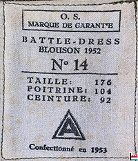 O.S. A = Armée luxembourgeoise Confectionné en 1953 |