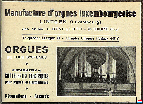 | 23.04.1924 | Fondation - Gründung: Orgelbauanstalt Georg Stahlhuth, Lintgen Inhaber Georg Haupt und Josef Fieth, Köln - Marienburg |