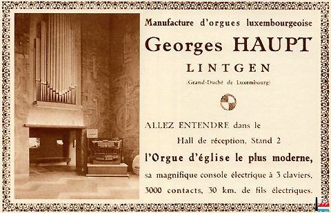 | 1.11.1963 | Fondation - Gründung: Fabrique d'orgue luxembourgeoise s.àr.l. Lintgen durch August Mreches (Reifenhändler) |