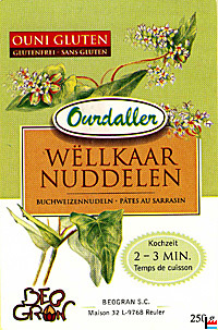 Ourdaller Wëllkaar Nuddelen Buchweizennudeln Ouni Gluten Glutenfrei sans gluten Ourdaller Buchweizenmehl und Guarkernmehl. BEOGRAN, Reuler |