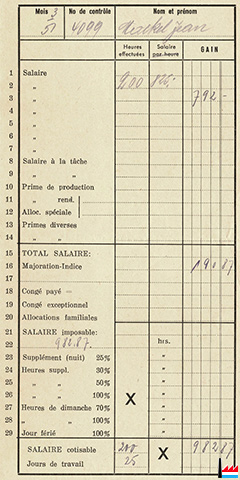 Paifiche vun der HADIR - Atelier des appprentis - Lohnabrechnung 3.1951 (Collection: industrie.lu)