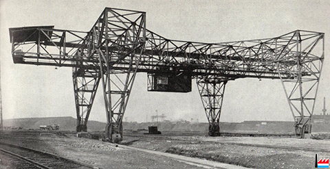Pont-rails Paul Wurth du crassier à Dampremy, travée principale, porté 59,10 m, travée d'approche, portée: 21,63 m (Collection: industrie.lu)