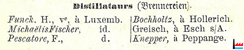 | 1857 | ![]() Distillateurs - Brennereien : Pescatore, F., à Luxembourg |