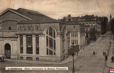 Luxembourg: Bains municipaux & Avenue Pescatore - vers 1910 (Carte postale: Kunstverlag P.C. Schoren, Luxemburg; collection industrie.lu)