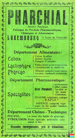 « Pharchial », fabrique de produits chimiques, pharmaceutiques et alimentaires, Luxembourg. |