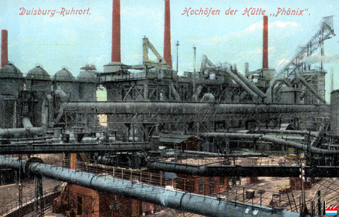 Hochöfen der Hütte Phönix, Duisburg - Ruhrort (Carte postale: No 644 Kunstverlag Paul Gerngross, Duisburg;