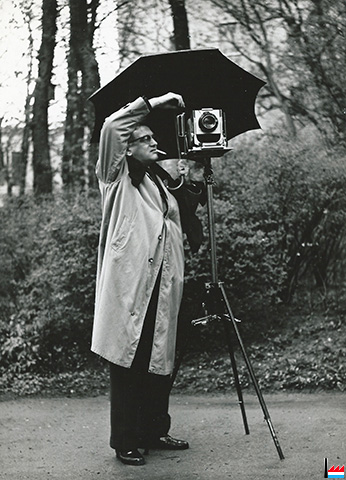 Vers 1959-1960 - Pol Aschman, maître photographe. - Chambre photographique pliante Linhof Technika III E, 13x18 cm, 1952 (Collection famille Aschman-Bodson)