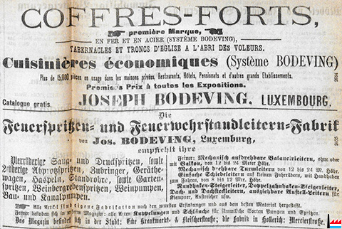 | 1856 | Construction de pompes à incendie par l'Etablissement de Mécanique Agricole d'Albert Dondelinger, Lintgen | ||