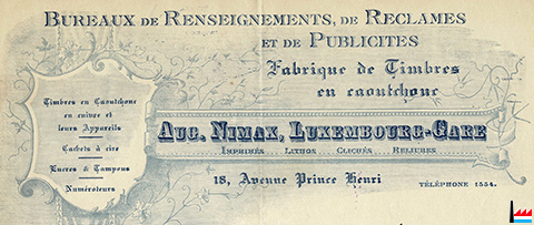 | <=1922 | ![]() Nimax Auguste,18 avenue Prince Henri, Luxembourg, tél: 1554 (Collection: industrie.lu) Bureaux de Renseignements, de Reclames et de Publicités |