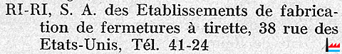 | 1971 | Effectif: 70 personnes(dont 80% de main-d'oeuvre féminine) et la production d'élevait à 1.151 km de fermetures dont 65 % en métal et 35 % en nylon. La production était exportée à raison de 96% (Belgique 78%, France 9,5% et Pays-Bas 8,5 %) | ||