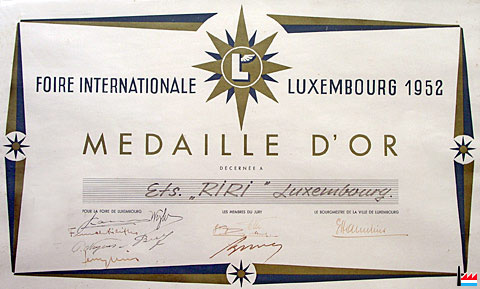 Médaille d'or décernée aux Ets. RIRI Luxembourg - Foire Internationale Luxembourg 1952