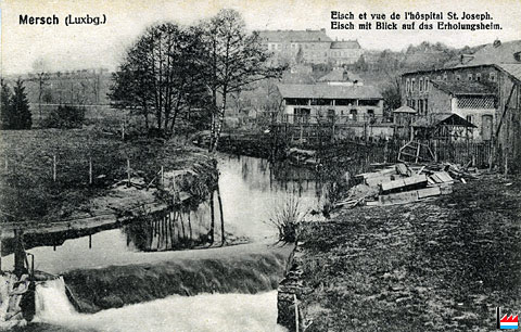 Mersch: Hier befand sich früher eine Erzwäscherei an der Eisch, um 1911