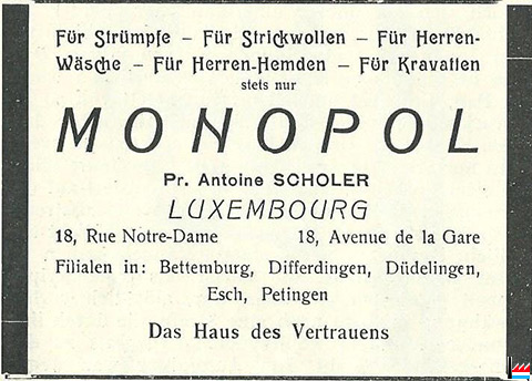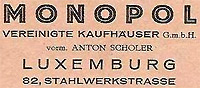 | 1938 | Eröffnung der "Filiale" in Esch nicht unter dem Namen Monopol, sondern Scholer | ||