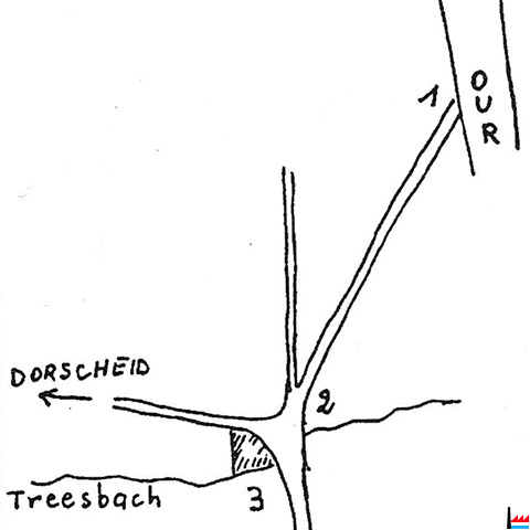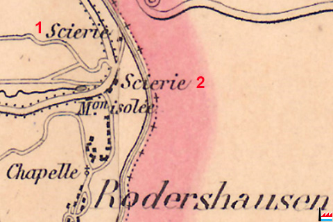 2 scieries, à Rodershausen: (1) Scierie en haut sur l'Our - (2) Scierie en-dessous sur Treesbach