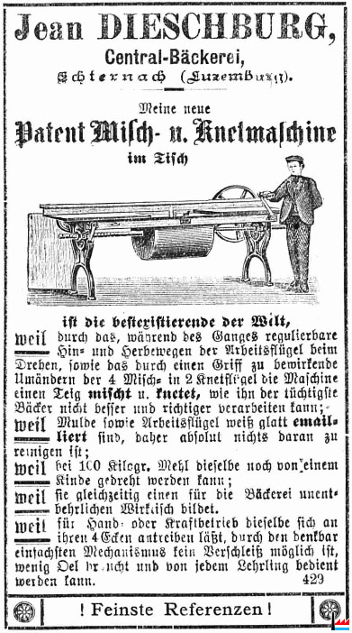 | 1938 | Villa Liberté, Echternach à louer route de Luxembourg 13 Zimmer, besonders geeignet fèr Familienpension Eigentümer: Jean Dieschburg (dieselbe Person?) (LW: 15.6.1938) |